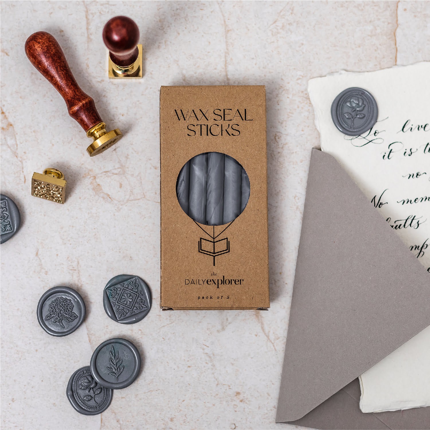 These Wax Seal Sticks are available in a pack of 5, designed for use with a glue gun, are ideal for various projects, including wedding invitations, christening and wedding stationery, brand packaging, family stationery, creative crafts, and more.
