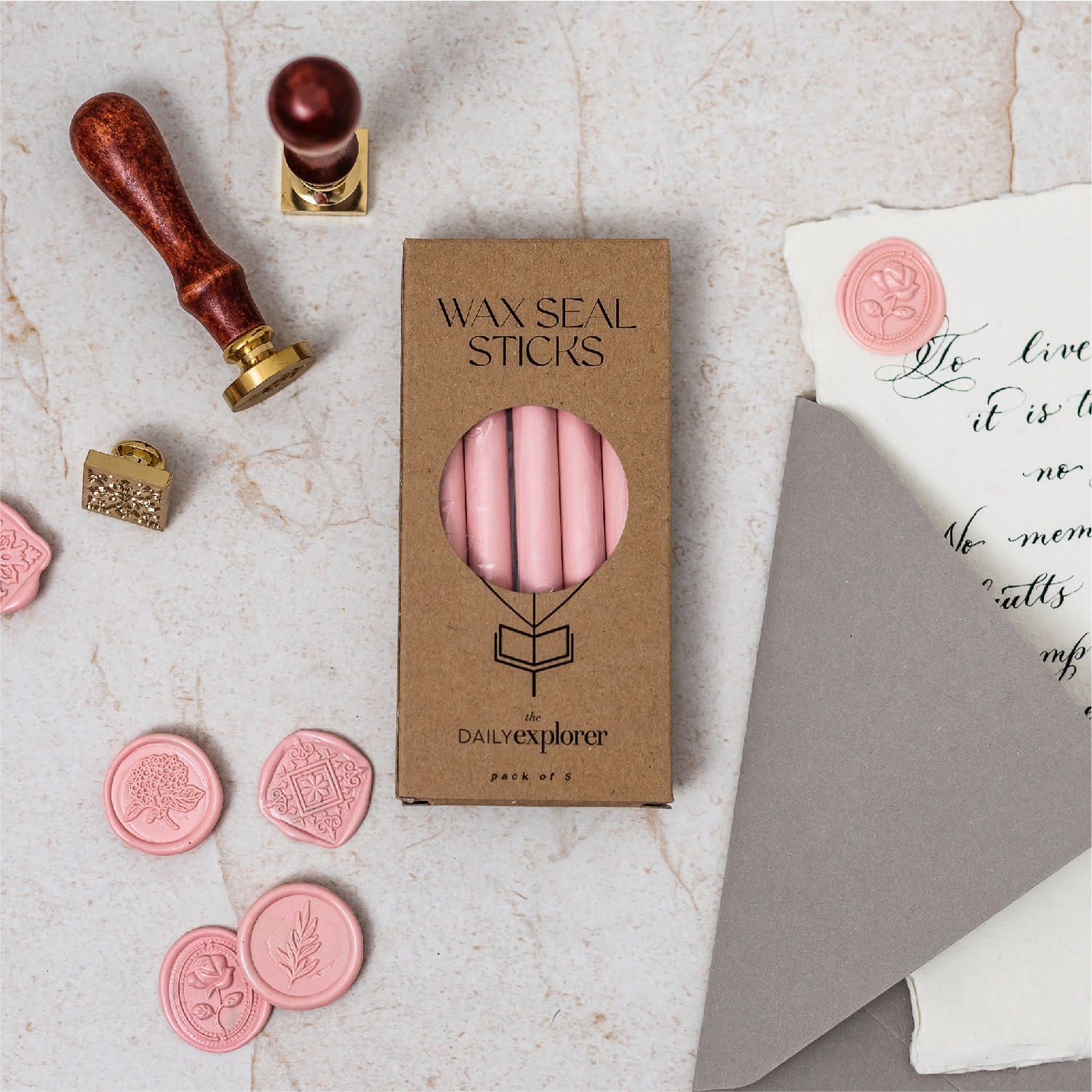 These Wax Seal Sticks are available in a pack of 5, designed for use with a glue gun, are ideal for various projects, including wedding invitations, christening and wedding stationery, brand packaging, family stationery, creative crafts, and more.